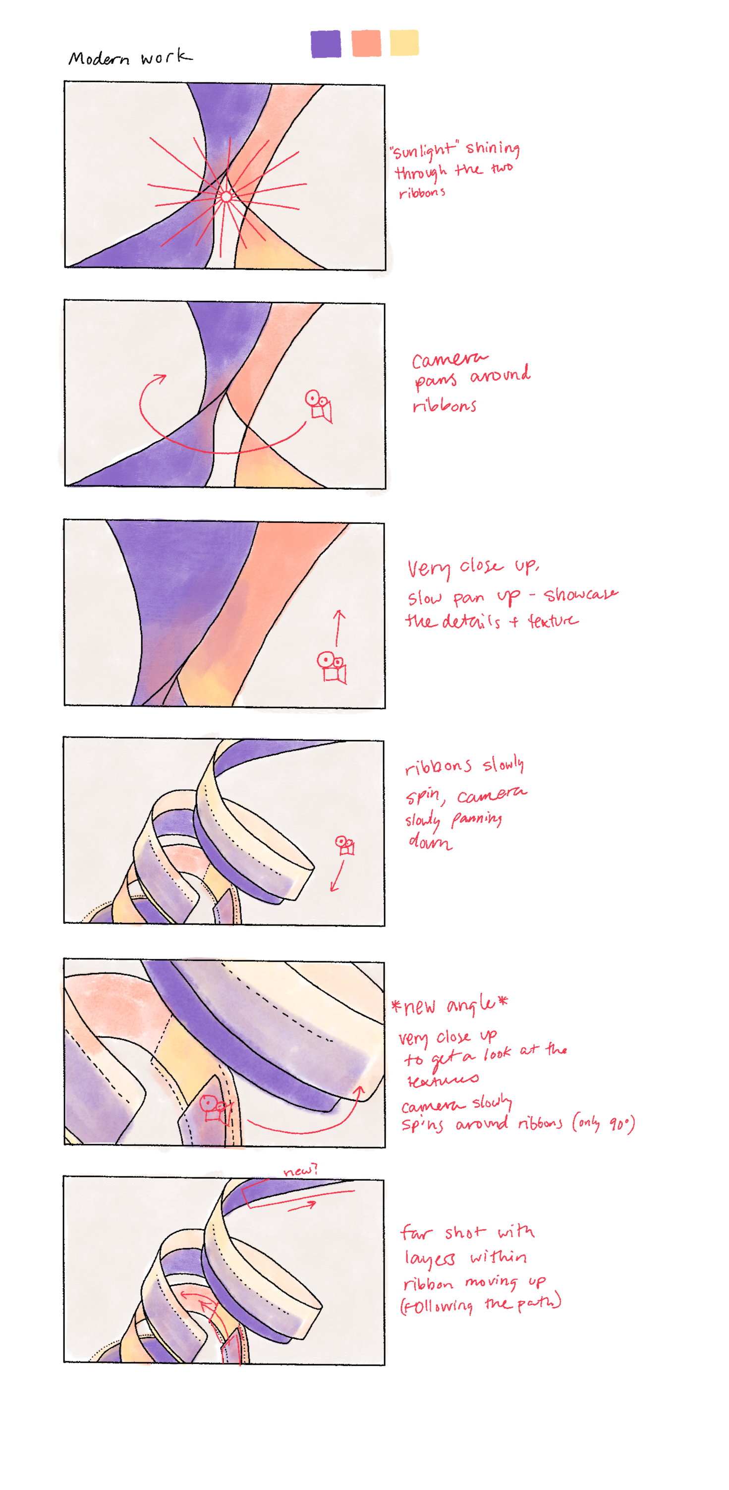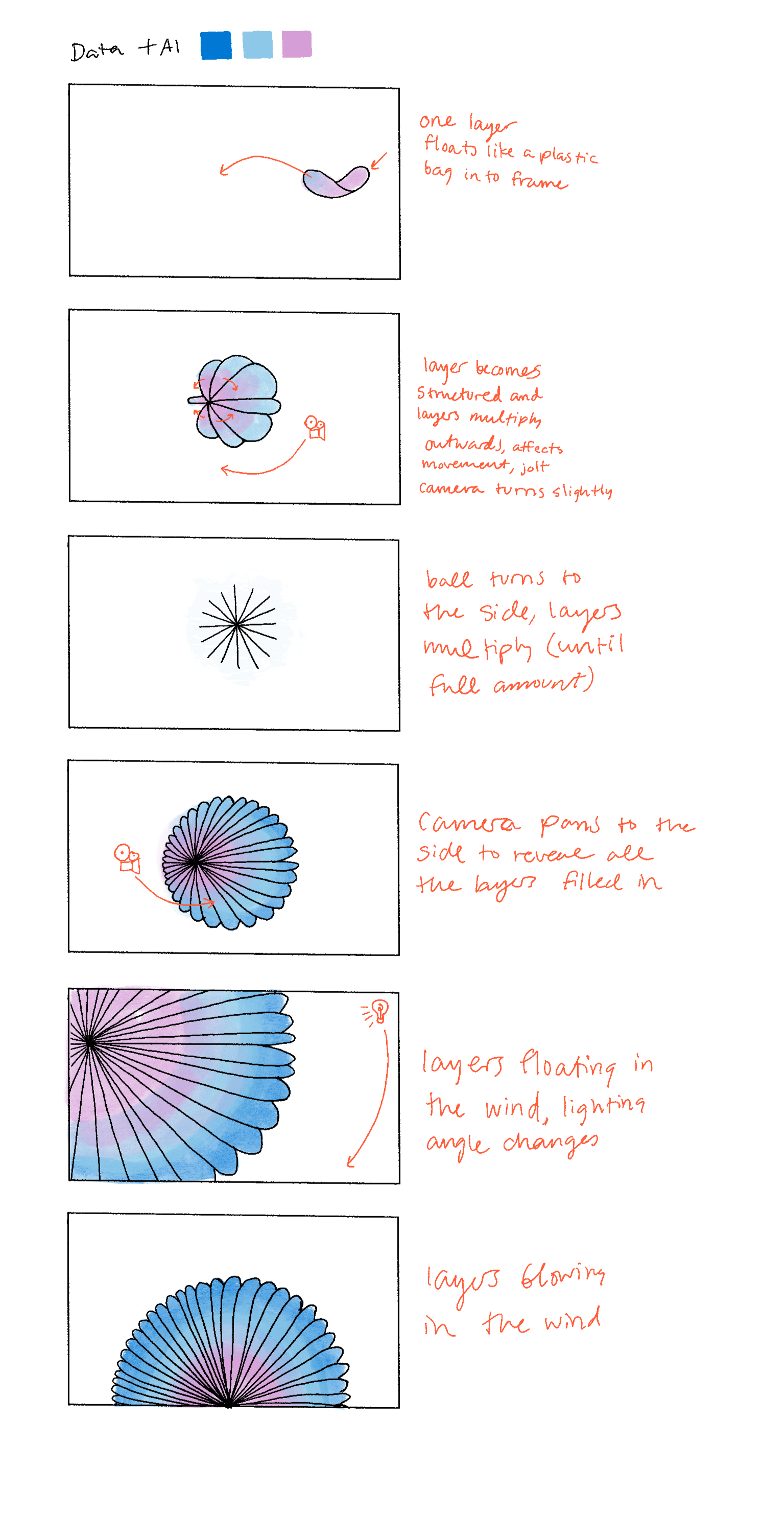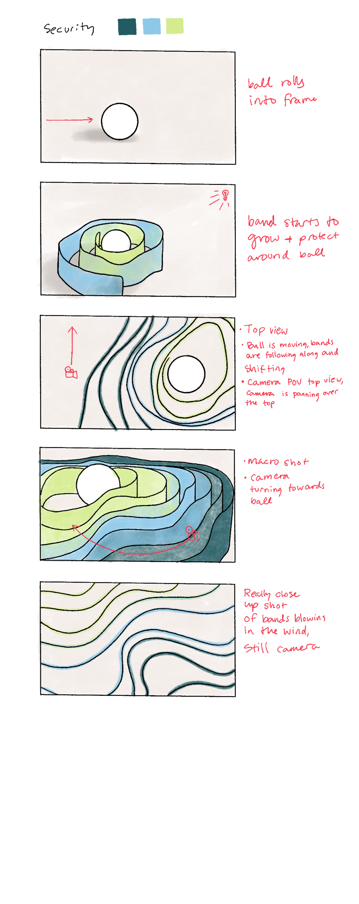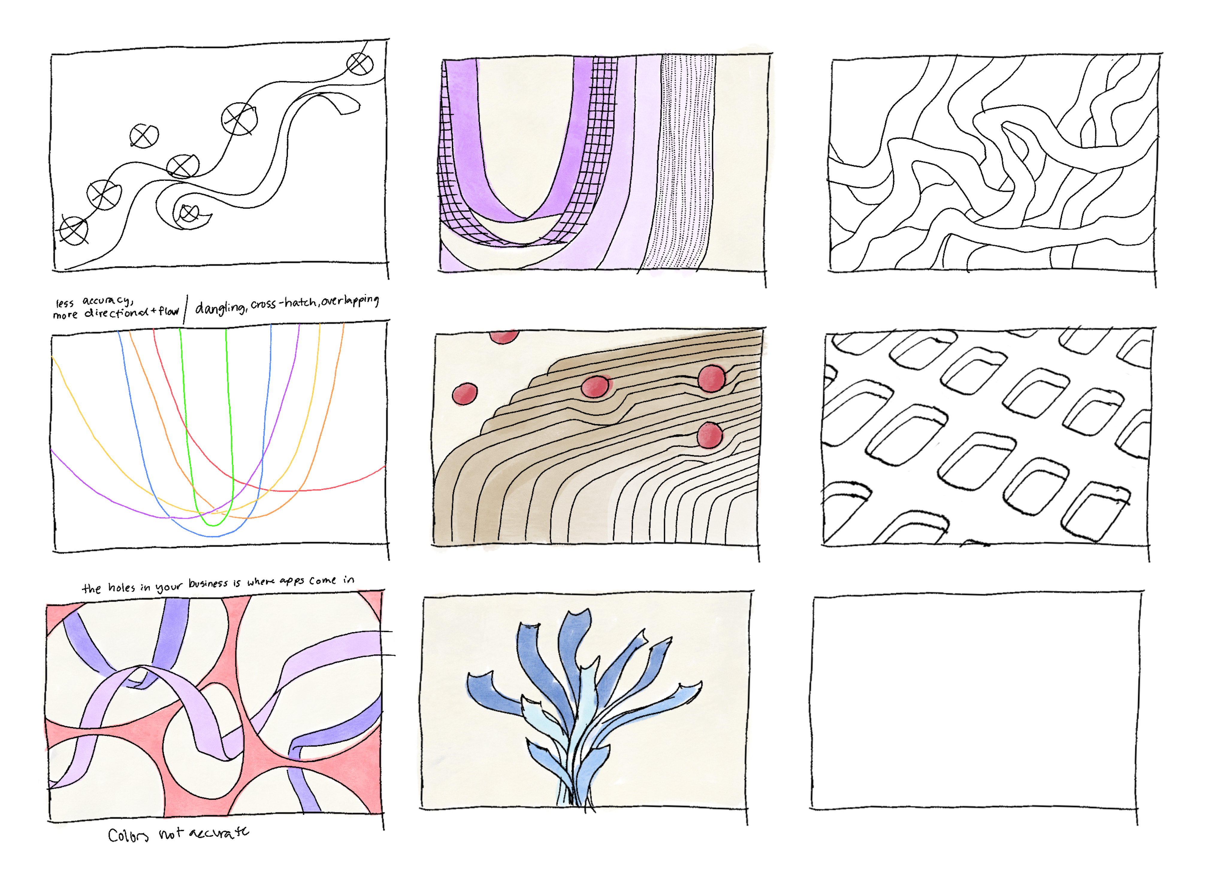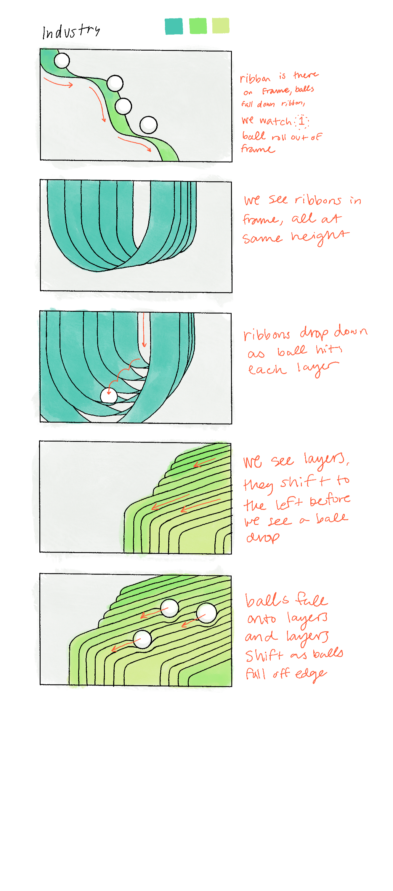 Sketching was a very large part of the process for this project. There were many iterations to figure out the best approach for the shapes of the 3D objects, colors, and composition. Once the shapes were figured out we used sketching to solve for the short 3D animated videos that we also delivered to event teams.